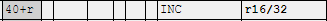 以32位版本 inc 为例,它的primary opcode为 $40+r$,这个 $r$ 指的就是寄存器编号